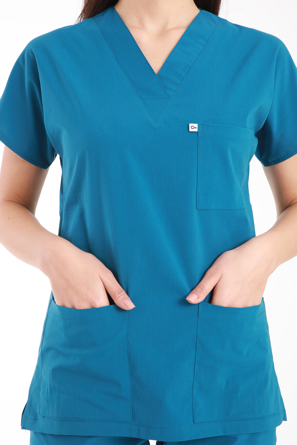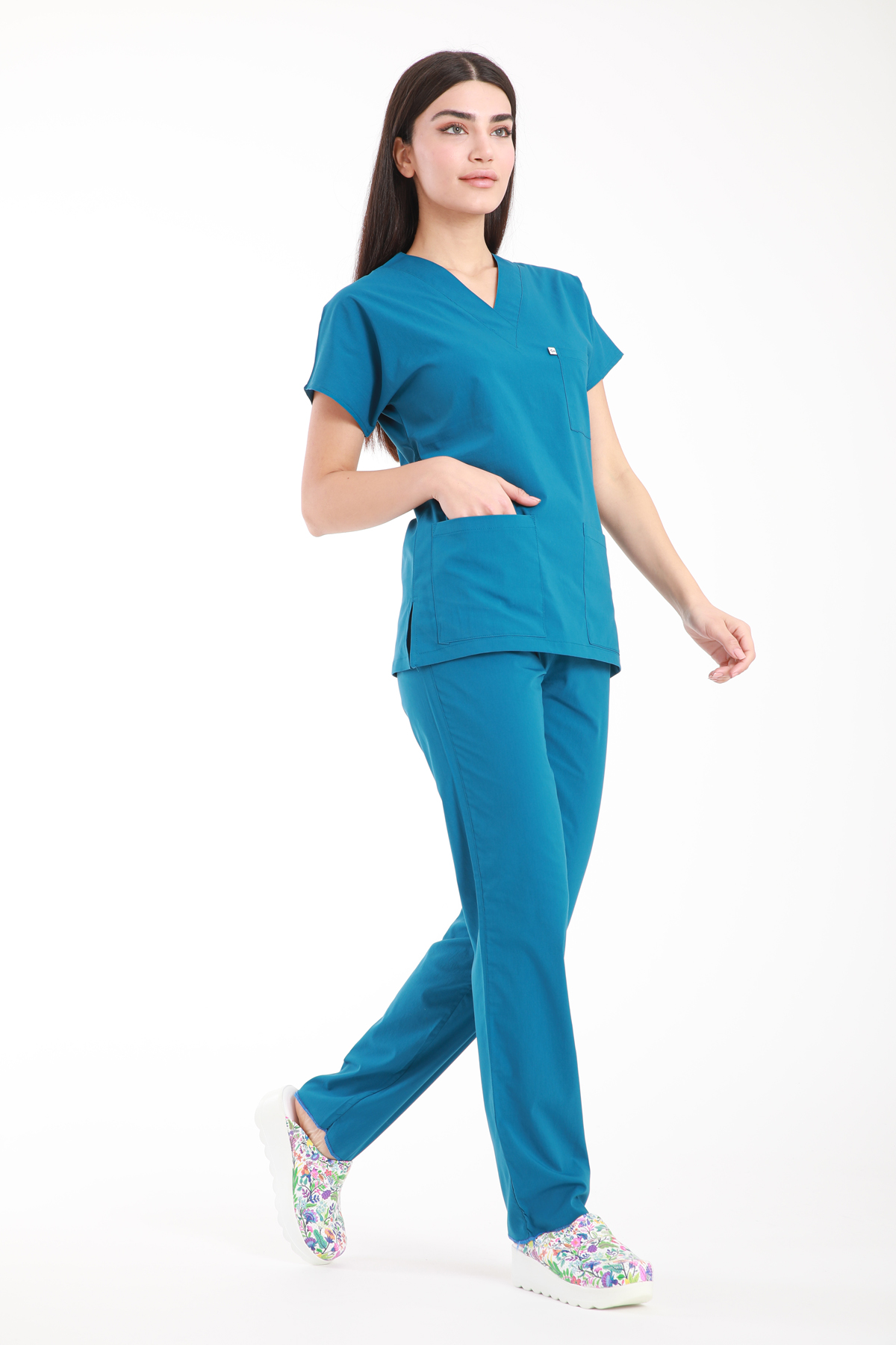 AÇIK PETROL YEŞİLİ LİKRALI COTTON YARASAKOL SCRUBS