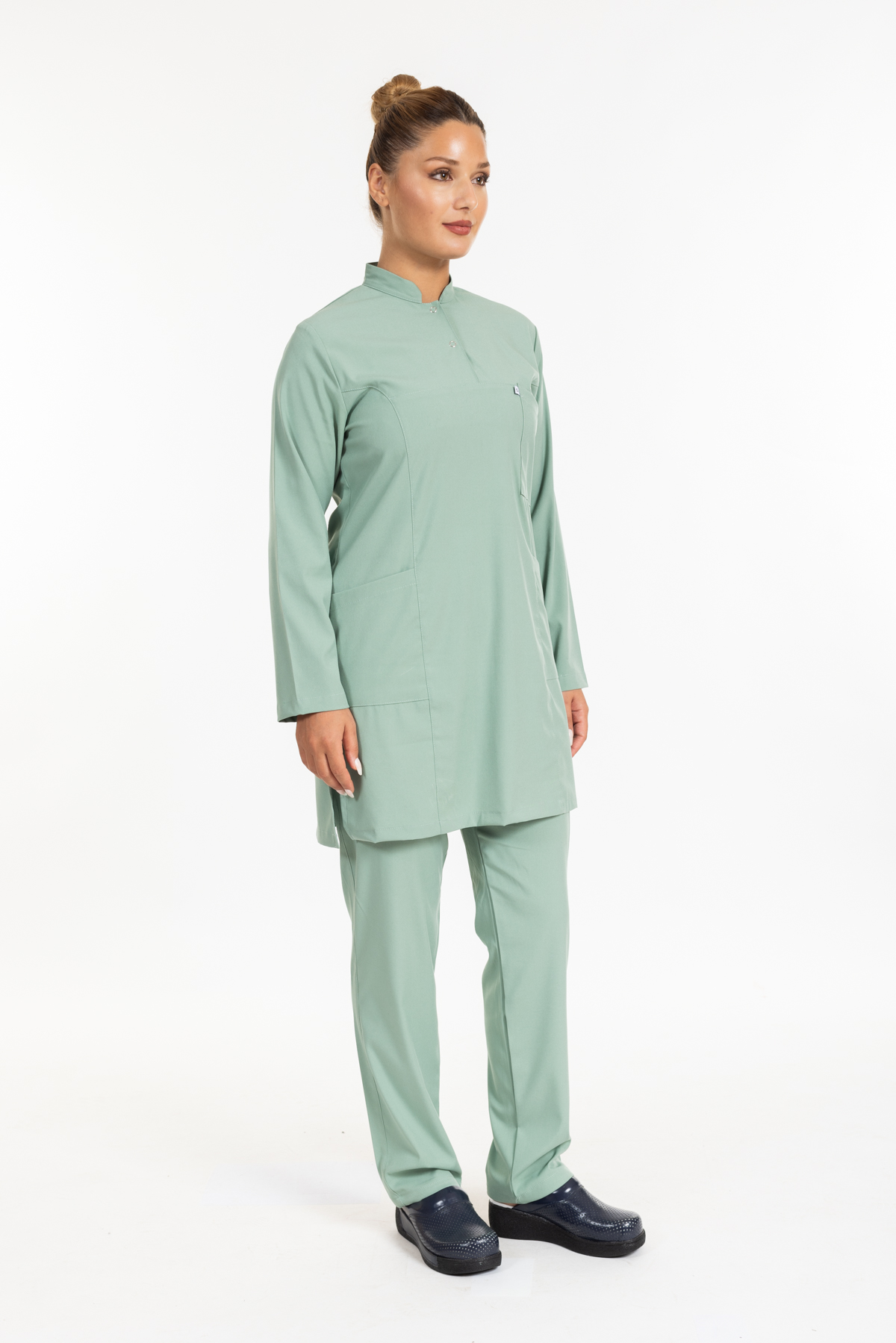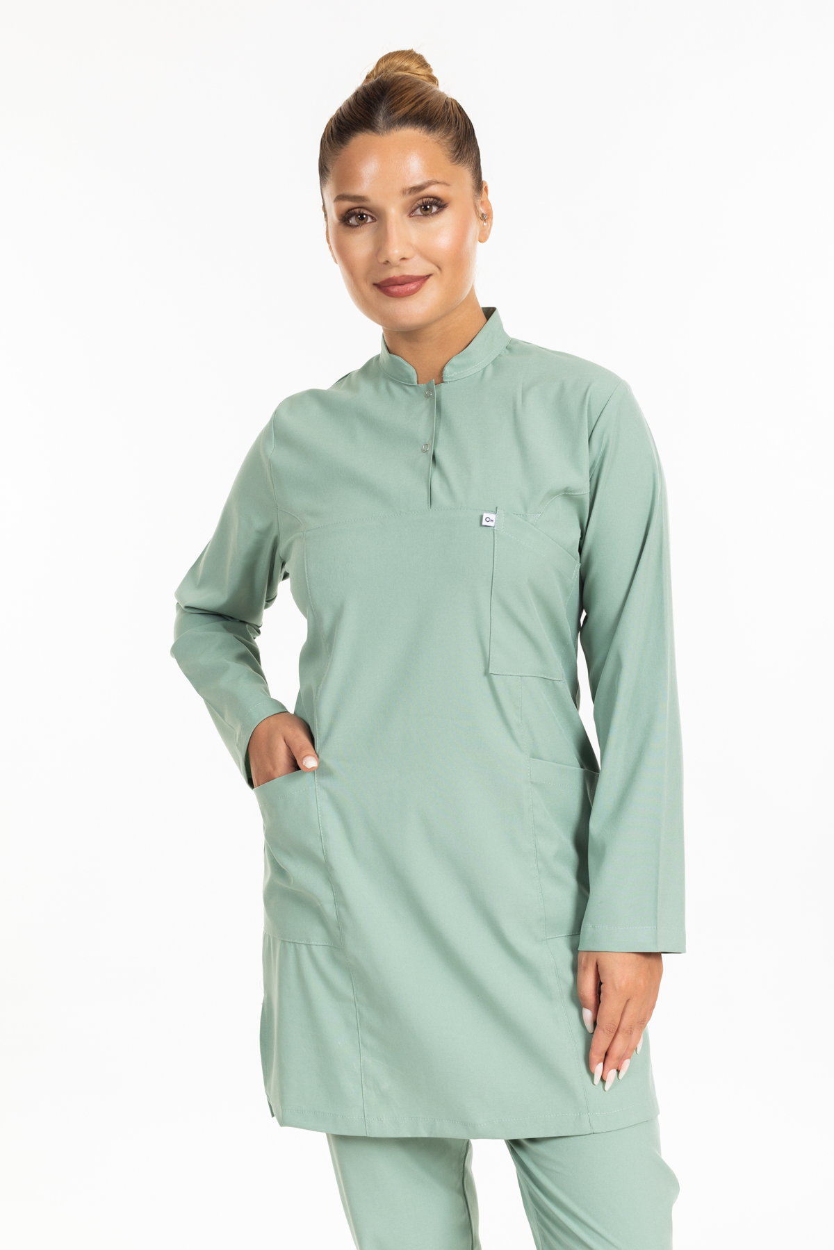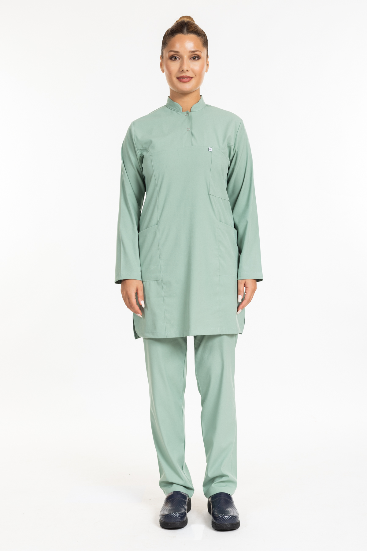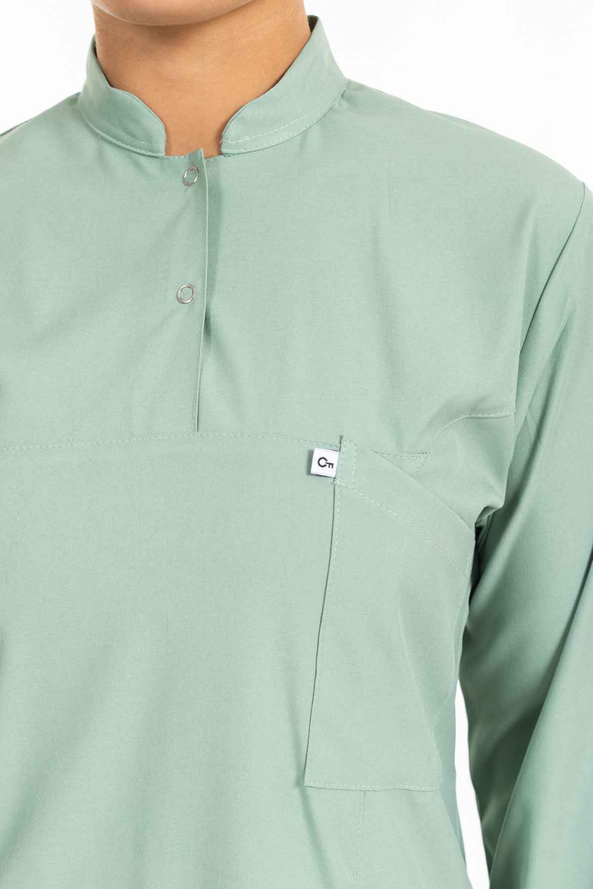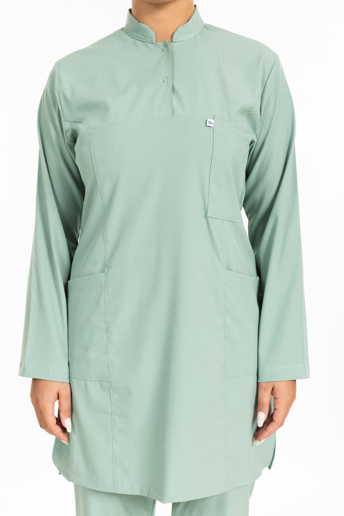 - Çağla Yeşili Likralı Tesettür Takım Premium Hakim Yaka (Çıtçıtlı) rahatlık ve şıklık anlamına sahip olan hakim yaka modeli ameliyathane, acil servis, yoğun bakımlar ve bazı yataklı servislerde nöbet forması olarak tercih edilmektedir.