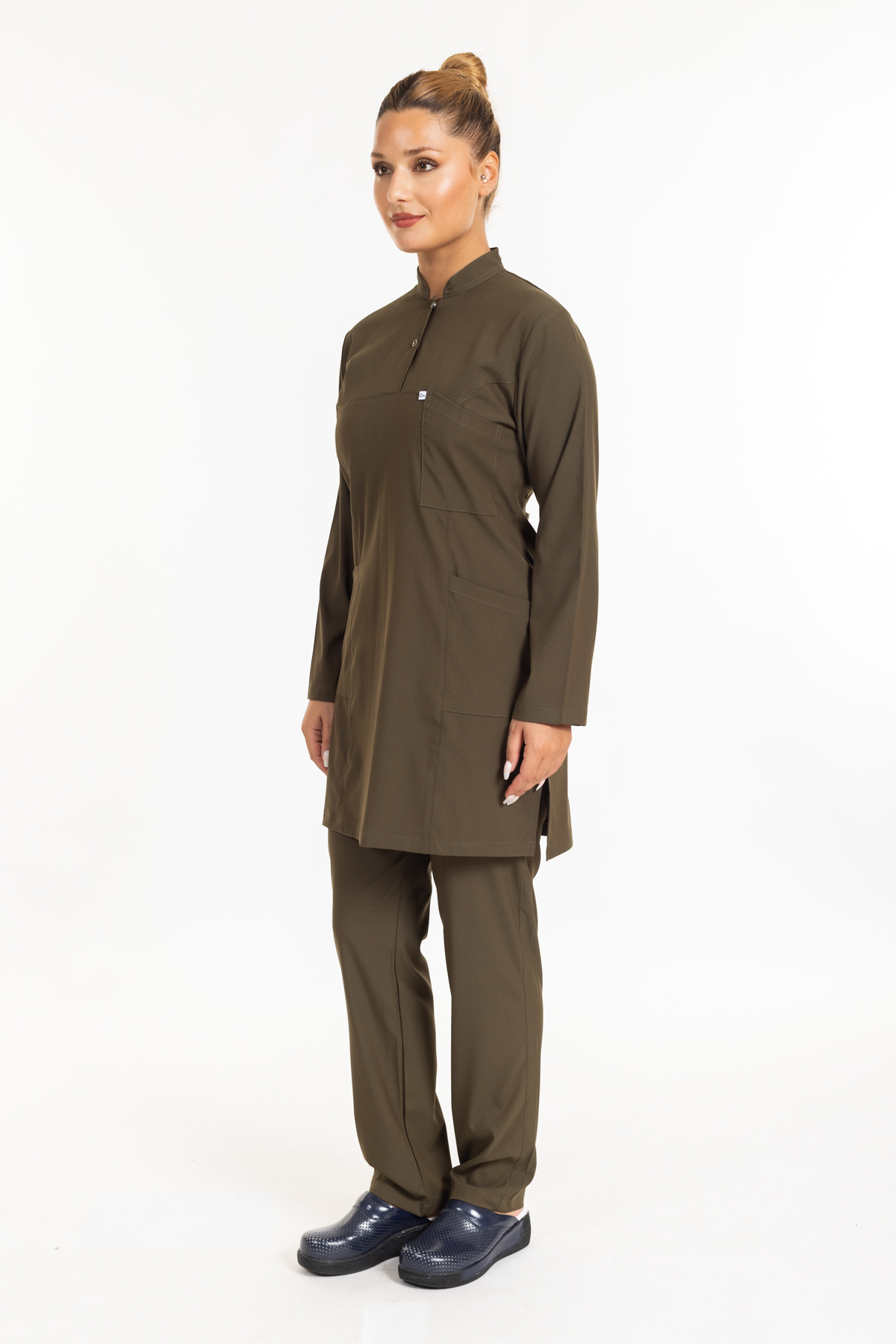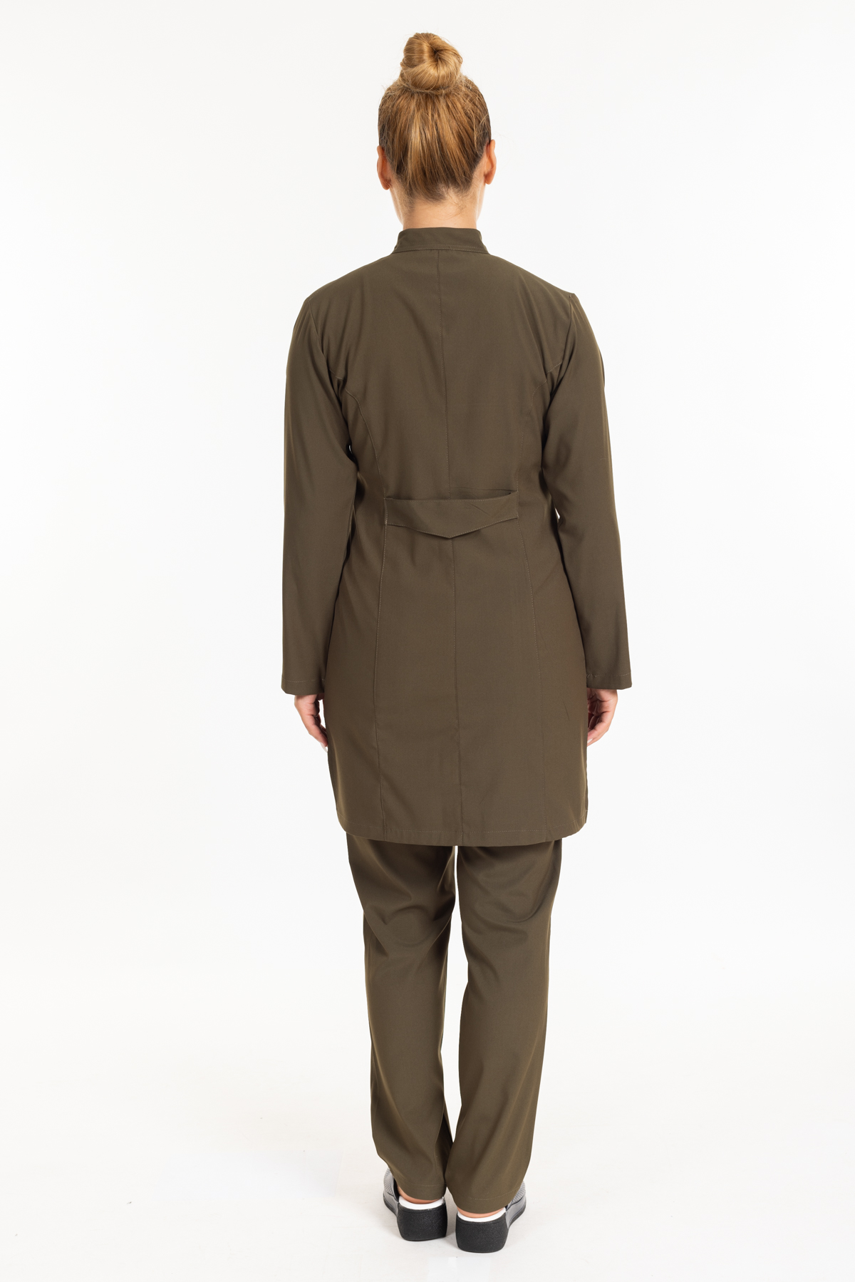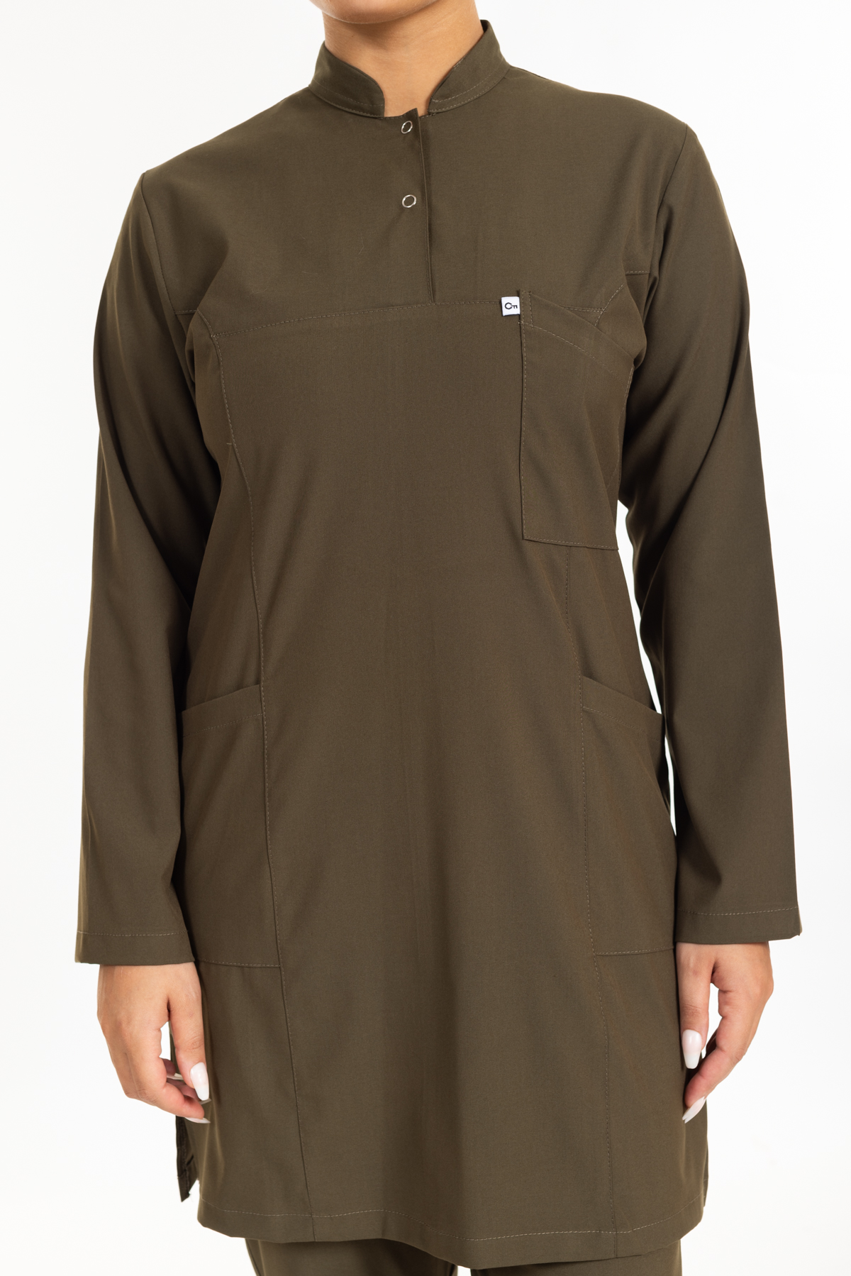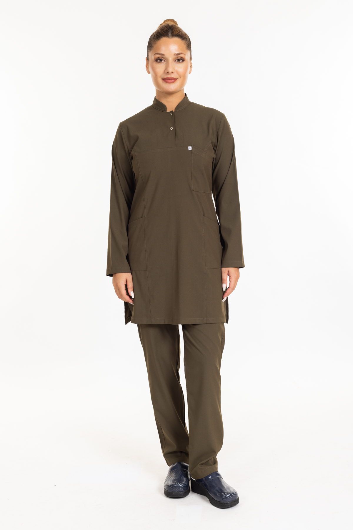 - Haki Yeşil Likralı Tesettür Takım Premium Hakim Yaka (Çıtçıtlı) rahatlık ve şıklık anlamına sahip olan hakim yaka modeli ameliyathane, acil servis, yoğun bakımlar ve bazı yataklı servislerde nöbet forması olarak tercih edilmektedir.