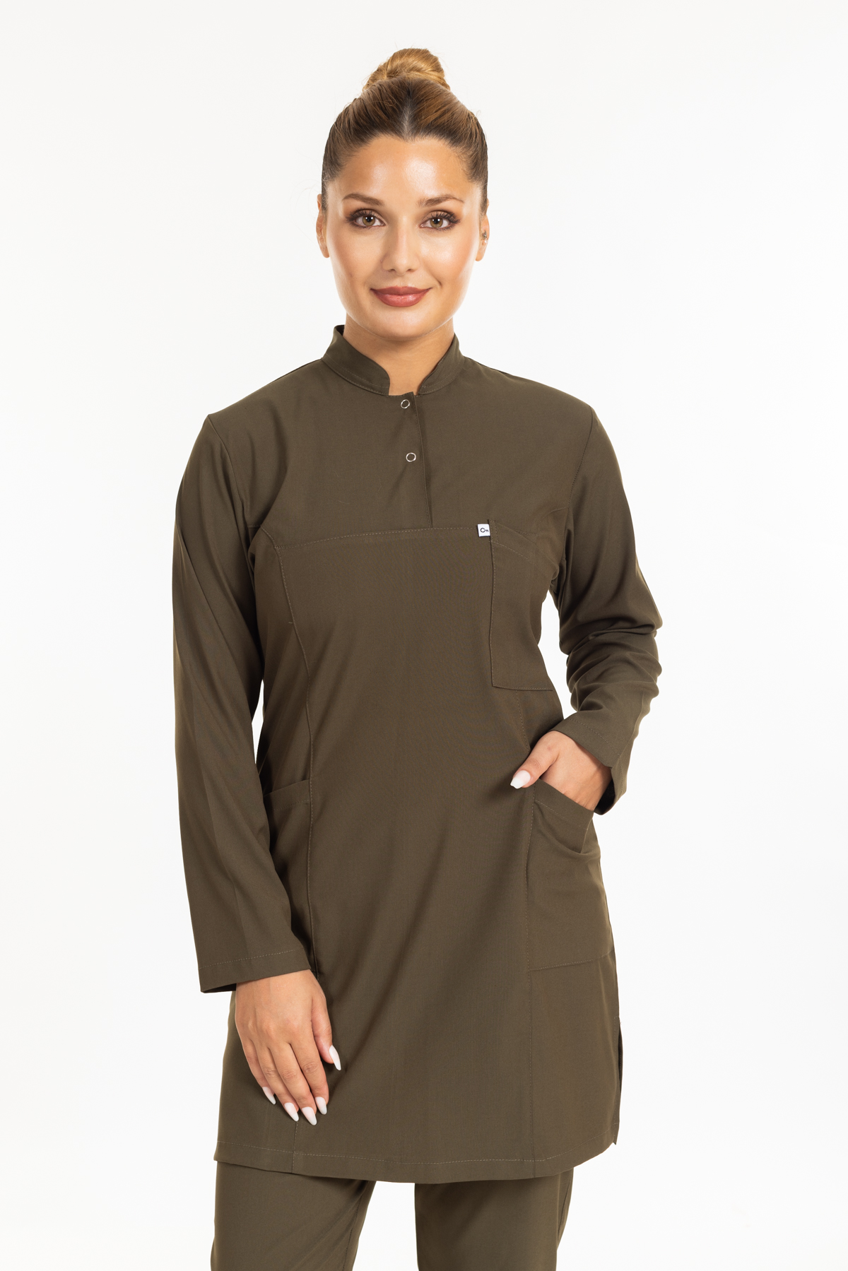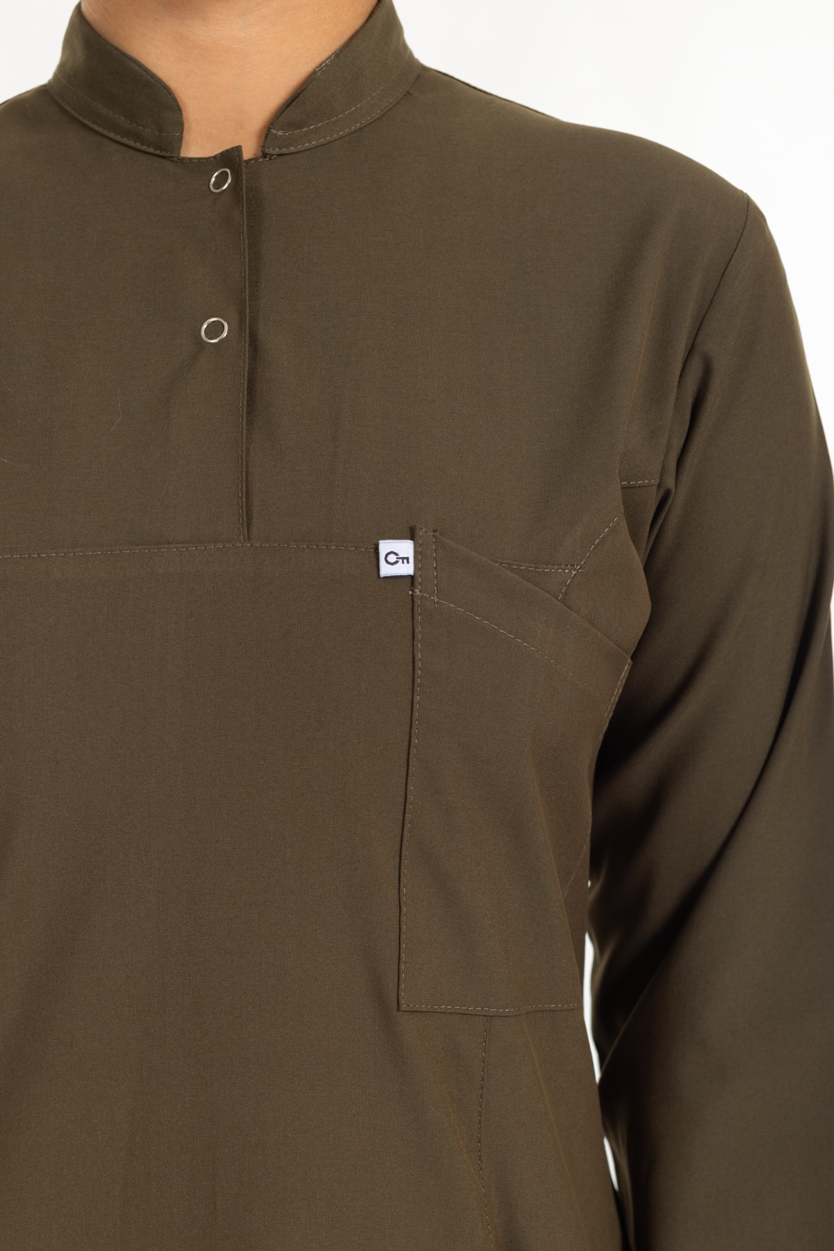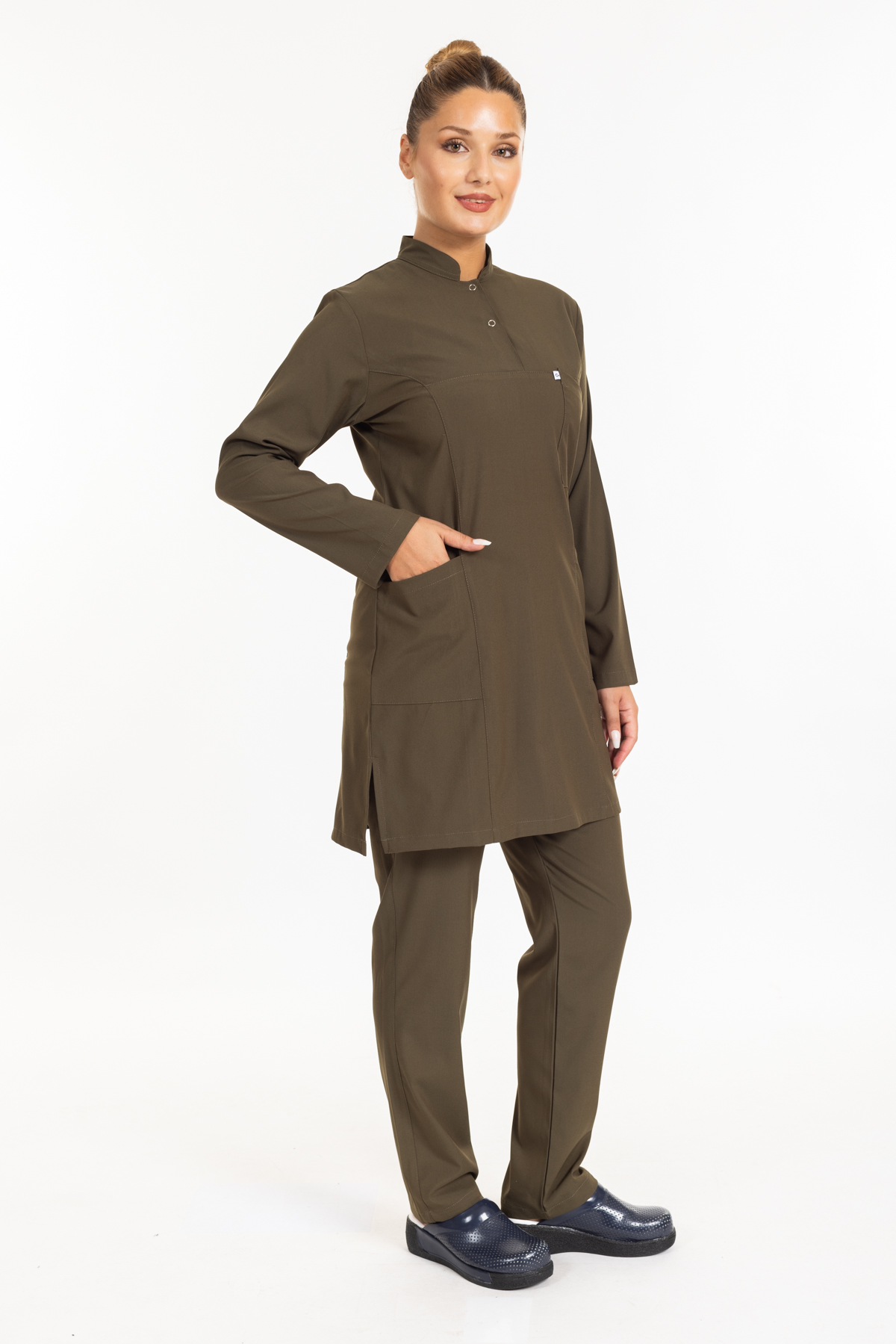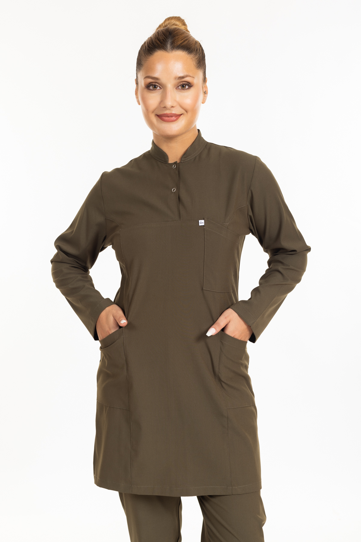 - Haki Yeşil Likralı Tesettür Takım Premium Hakim Yaka (Çıtçıtlı) rahatlık ve şıklık anlamına sahip olan hakim yaka modeli ameliyathane, acil servis, yoğun bakımlar ve bazı yataklı servislerde nöbet forması olarak tercih edilmektedir.