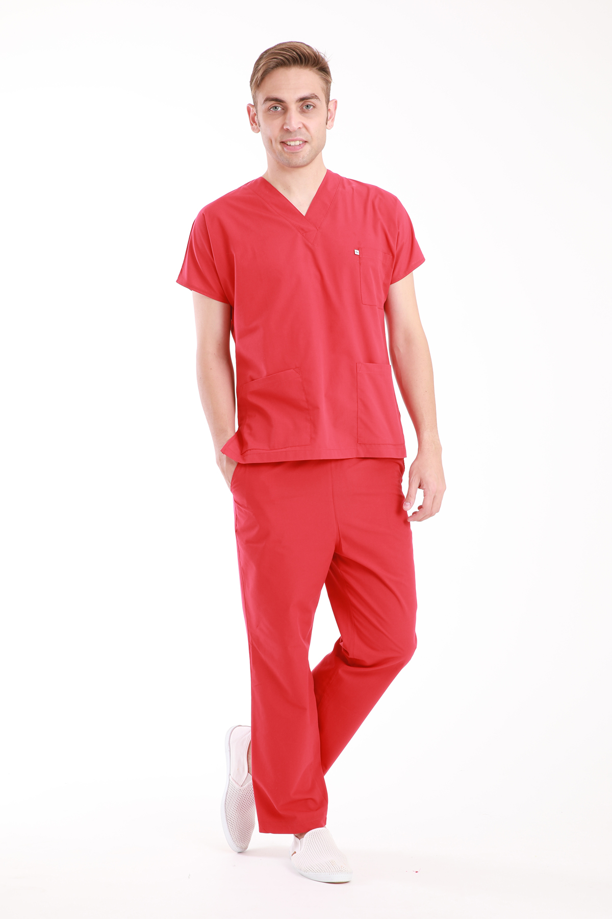 - Kırmızı Terikoton Yarasakol Scrubs Modeli hem kadınlar hem de erkekler için özel imal edilmiştir ve unisex olarak geçmektedir. Scrubs Yarasakol Modelinde Terikoton kumaşlar bazında 15’den fazla renk seçeneği mevcuttur ve her geçen gün yeni bir renk çalışması gerçekleşmektedir. Rahatlık ve şıklık anlamına sahip olan Yarasakol Scrubs Modeli ameliyathane, acil servis, yoğun bakımlar ve bazı yataklı servislerde nöbet forması olarak tercih edilmektedir.