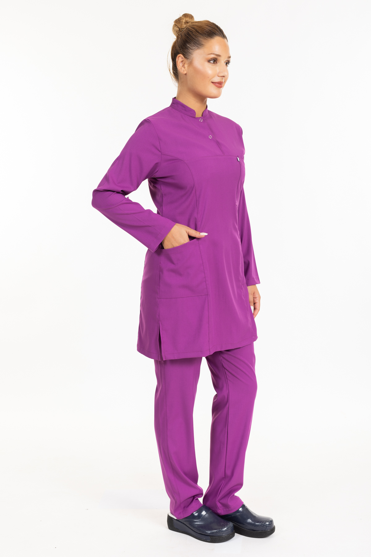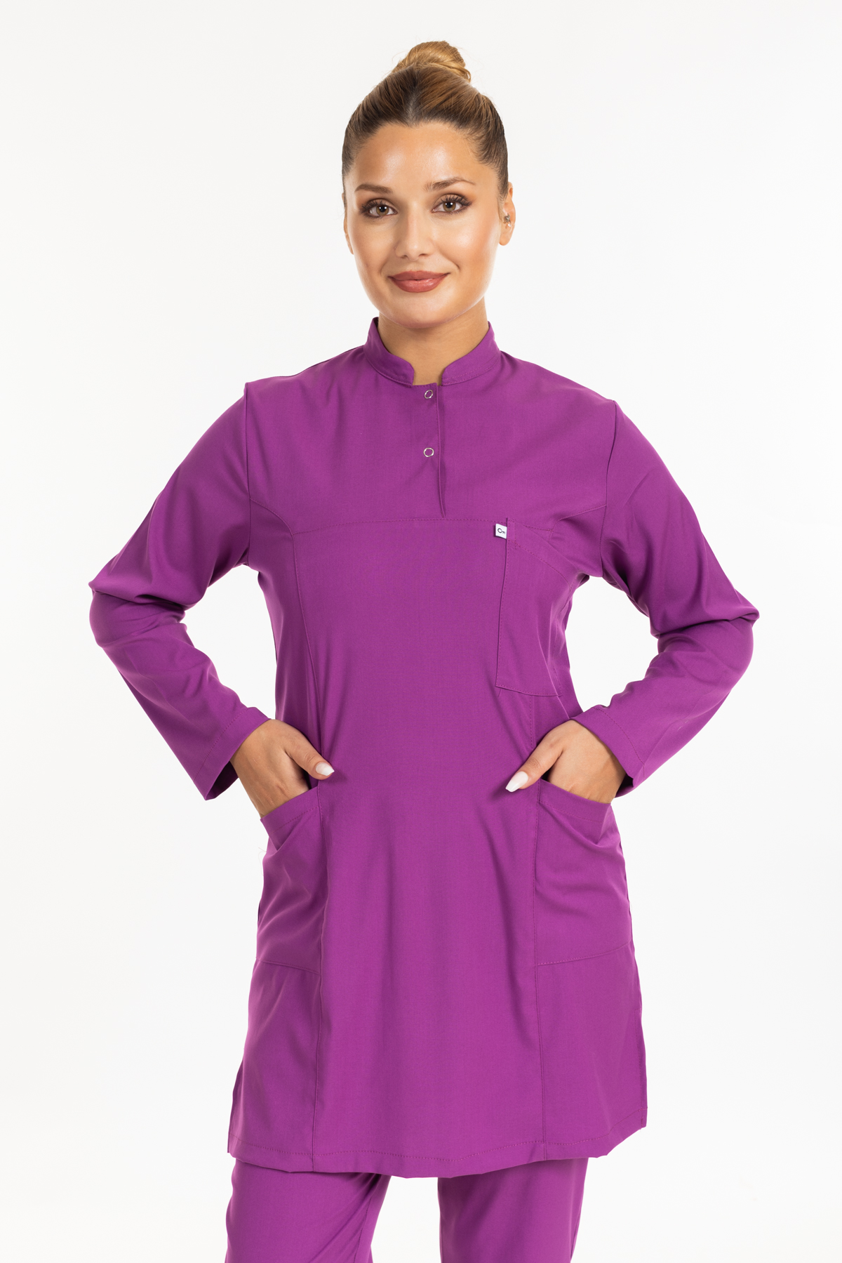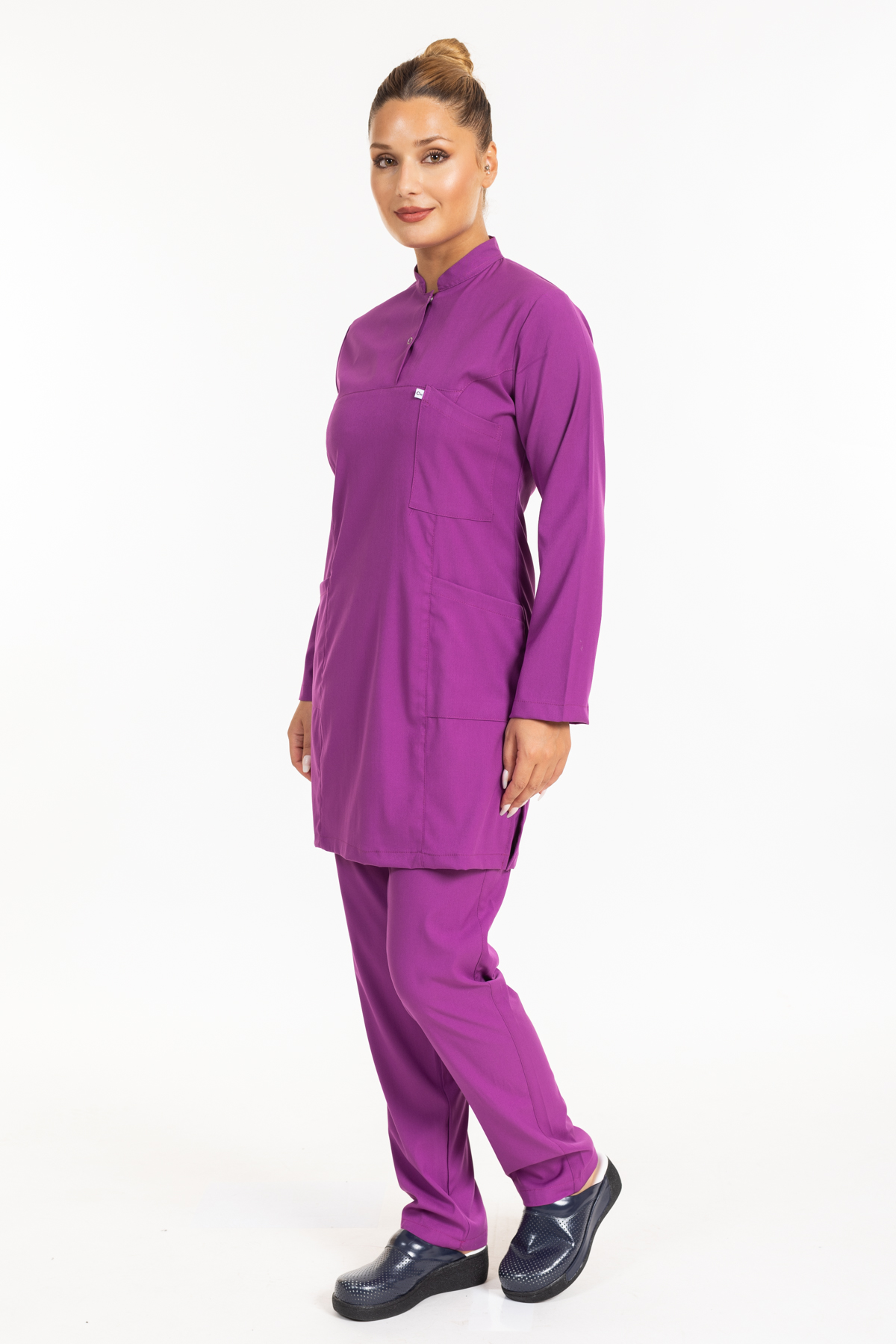 - Vişne Likralı Tesettür Takım Premium Hakim Yaka (Çıtçıtlı) rahatlık ve şıklık anlamına sahip olan hakim yaka modeli ameliyathane, acil servis, yoğun bakımlar ve bazı yataklı servislerde nöbet forması olarak tercih edilmektedir.